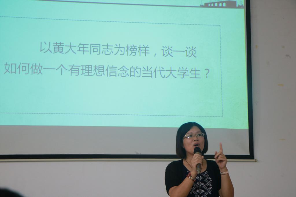 10月21日上午,东语bt365官网网址教工第一党支部书记许丽莉老师为166名入党积极分子带来了主题为“学习全国优秀教师、优秀共产党员黄大年同志的先进事迹”的党课。