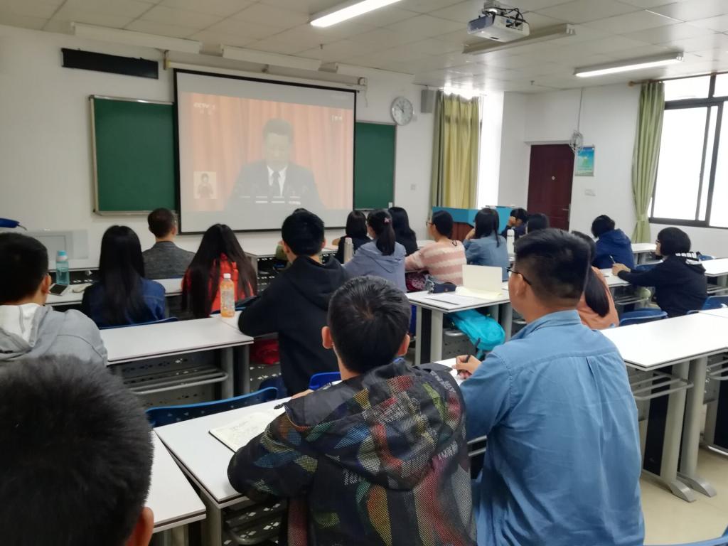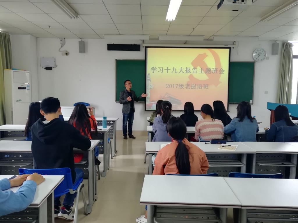 10月19日上午,2017级老挝语班学习党的十九大报告主题班会在国教楼715举行,班会分为观看视频和讨论两个部分进行,班主任吴大为老师主持了班会。