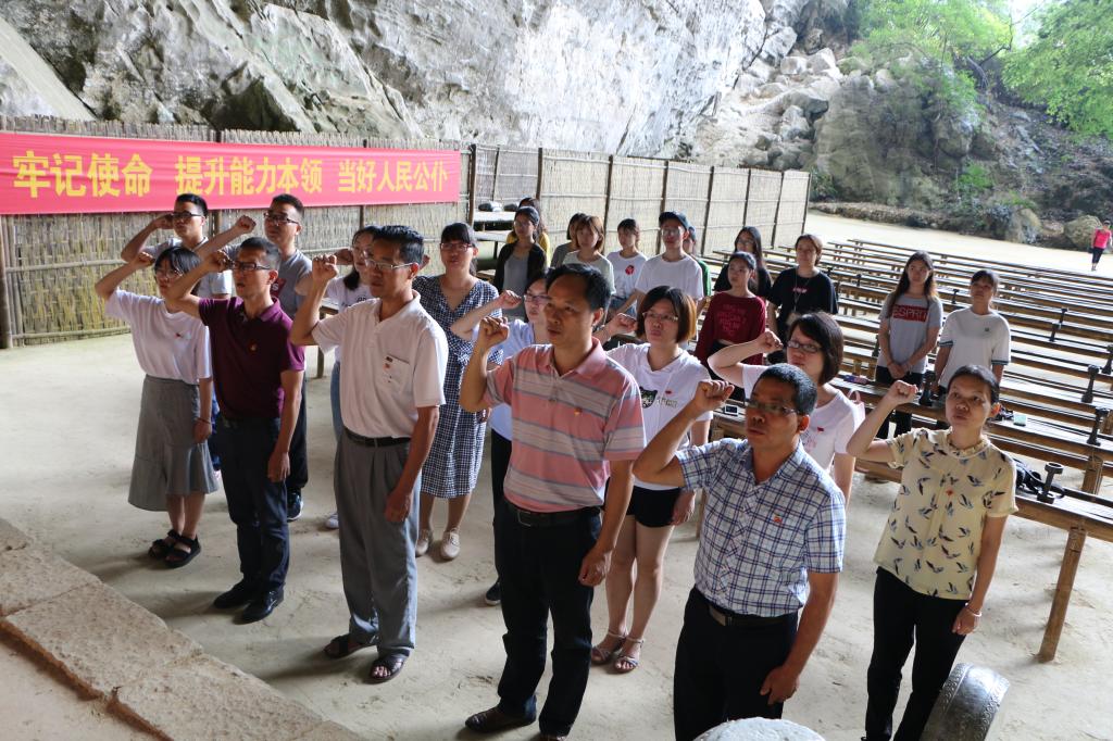 为进一步学习贯彻习近平新时代中国特色社会主义思想和党的十九大精神,深入推进“两学一做”学习教育常态化制度化,纪念建党97周年,落实我校第三次党代会提出的各项工作任务,激励我院党员坚定理想信念,继承和发扬党的光荣传统和优良作风,进一步增强基层党组织的凝聚力和战斗力,始终保持党的先进性和纯洁性,我院深入推进“不忘初心,牢记使命”主题教育活动,组织师生党员、发展对象于2018年6月23日至24日深入东兰县开展“迎七一红色之旅”主题教育培训活动,重温党的光辉历史,接受革命精神洗礼。