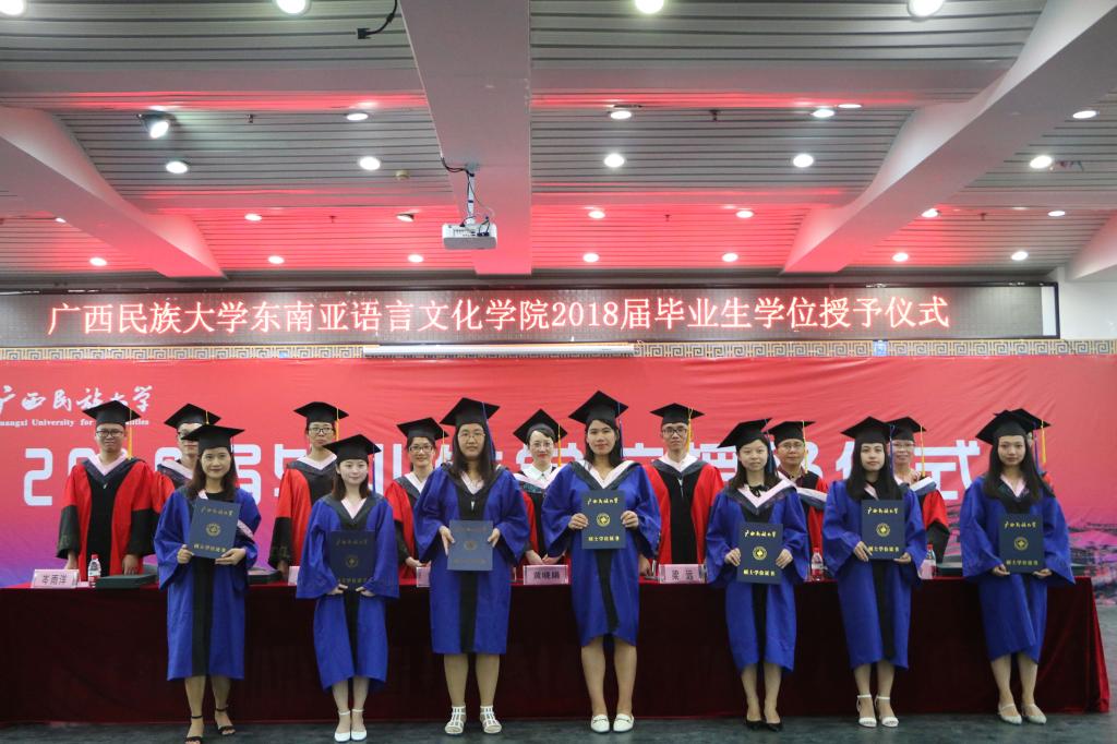 6月23日下午,东南亚语言文化bt365官网网址2018届毕业生学位授予仪式在大学生活动中心201室举行。广西民族大学副校长黄晓娟、东南亚语言文化bt365官网网址院长梁远、副书记吴大为、副院长覃秀红及bt365官网网址学位评定委员会成员、部分研究生导师、毕业班班主任、专任教师和学生家长与2018届毕业生齐聚一堂,共同参加学位授予仪式。