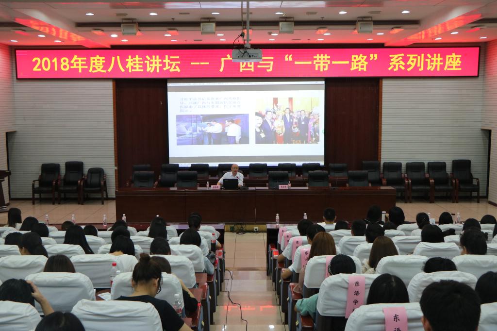 6月28日晚,广西民族大学图书馆“广西与‘一带一路’系列讲座”之二“研究东盟文教,促进合作交流”在我校科技楼报告厅举行。广西艺术bt365官网网址党委书记蔡昌卓教授担任主讲,我院师生积极参与聆听本次讲座。