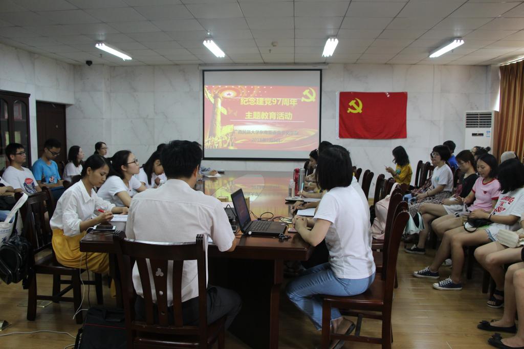 为进一步学习贯彻习近平新时代中国特色社会主义思想和党的十九大精神,深入推进“两学一做”学习教育常态化制度化,落实我校第三次党代会提出的各项工作任务,激励全体党员不忘初心、牢记使命,始终保持党员的先进性和纯洁性,7月6日下午,东南亚语言文化bt365官网网址学生党支部在国际教育综合大楼308室联合组织开展了纪念建党97周年主题教育活动。bt365官网网址党委何波书记、学生第一党支部书记陈婷老师、学生第二党支部书记李小萍老师、学生第三党支部书记卜荣平老师、各学生党支部党员以及2016、2017级各班班长、团支书参加了本次活动。