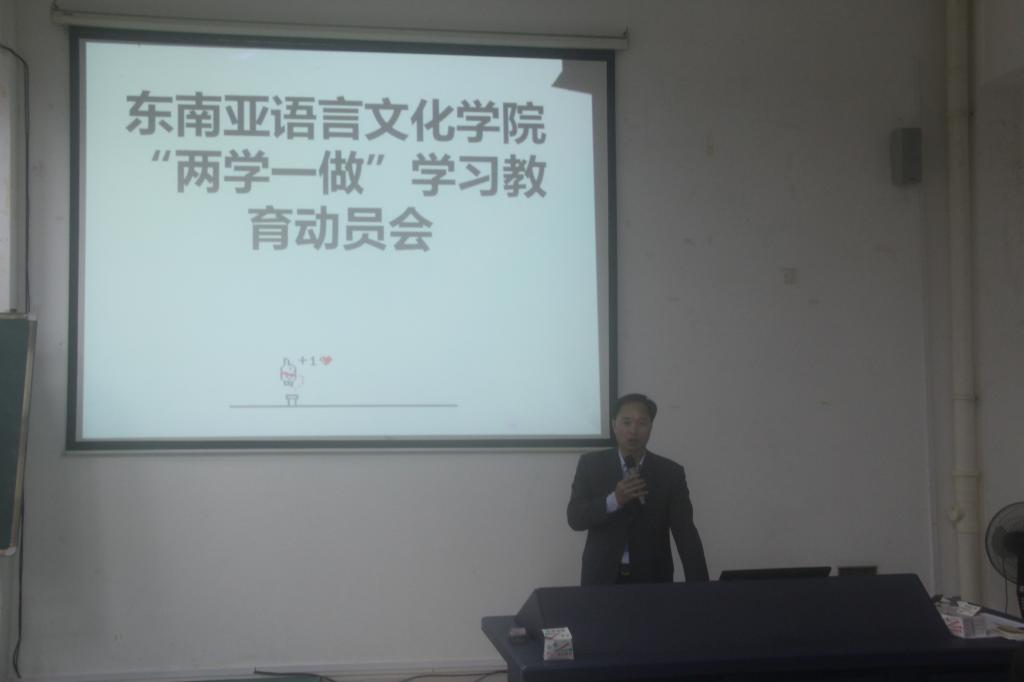 2016年4月1日下午,东南亚语言文化bt365官网网址“两学一做”学习教育动员会在基地楼报告厅召开。本次“两学一做”会议学习教育与动员会议由陈婷老师主持,党委书记何波发表重要讲话。bt365官网网址全体学生党员、预备党员和入党积极分子参加了本次会议,共同学习了会议精神。