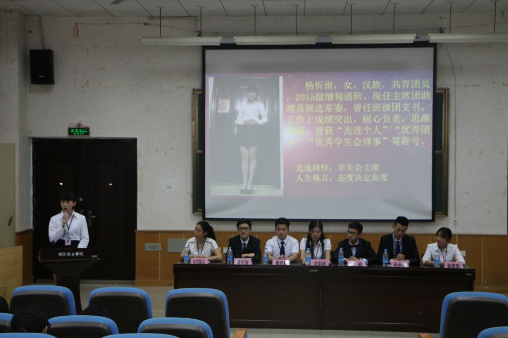 在八位候选常委轮流进行竞选演讲后,由全体团学成员及班级正式代表根据差额选举办法投票选出6位常委。计票期间,团委第一副书记农莉婷和学生会主席钟瑜先后进行工作总结。他们总结了bt365官网网址团委和学生会一年来的工作,指出了工作中的不足,肯定了全体成员一年来的辛勤付出,并预祝bt365官网网址发展得更好。随后,陈婷老师为上一任团学成员颁发聘书、为优秀委员和优秀理事颁奖。