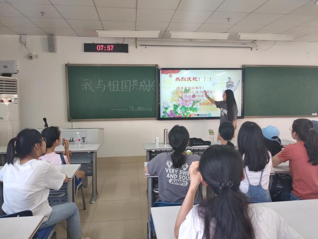 5月18日上午,我院2017级泰语2班团支部于国教楼601室开展了以“我与祖国共成长”为主题的团日活动。本次活动由团支书常艺睿主持,2017级泰语2班全体团员参加。
