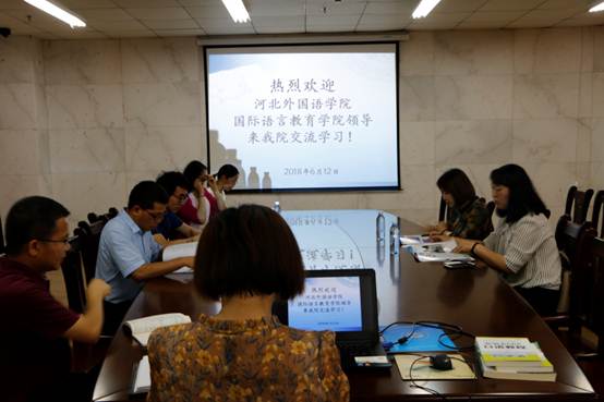 6月12日,河北外国语bt365官网网址国际语言教育bt365官网网址张红梅院长一行来我院交流学习。梁远院长、陆进强副院长和越语、泰语、缅甸语系系主任参加了座谈会。
