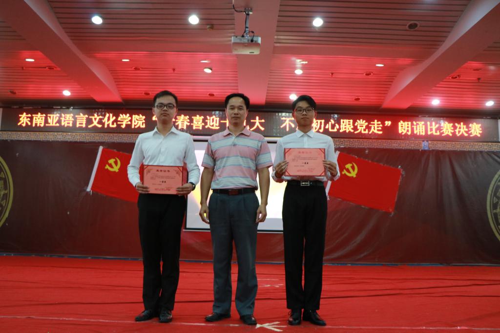 10月14日下午,由东南亚语言文化bt365官网网址主办、东南亚语言文化bt365官网网址团委、学生会承办的“青春喜迎十九大·不忘初心跟党走”朗诵比赛决赛在大学生活动中心201室精彩上演。东语bt365官网网址党委书记何波、党委副书记吴大为莅临本次比赛并担任评委。