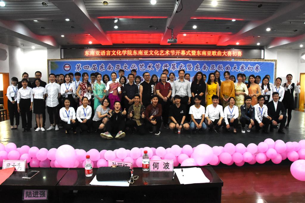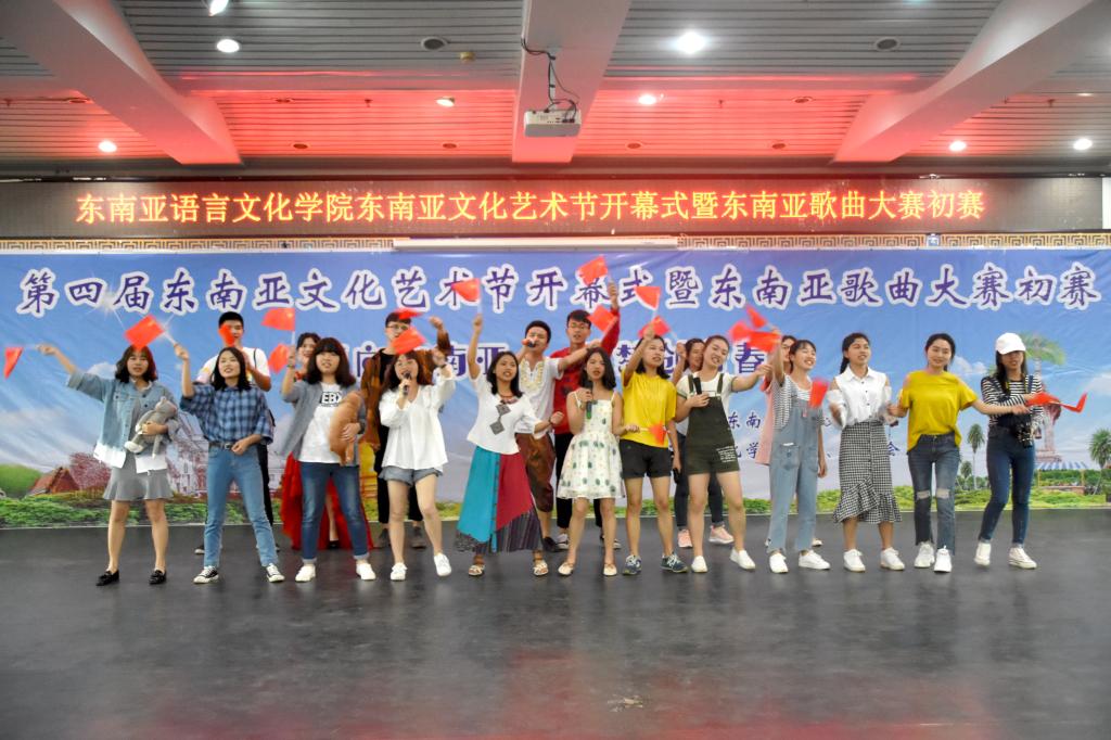 3月31日下午,东南亚语言文化bt365官网网址第四届东南亚文化艺术节开幕式暨东南亚歌曲大赛初赛在大学生活动中心201室顺利举行。最终,The Rok组合 、杨航、付涵、蒙欣、陈龙云、黄馨仪、林岚、韩俊宇、王艾、周昕睿共十人进入东南亚歌曲大赛决赛。东语bt365官网网址党委书记何波、学工处副处长黄仲品,艺术bt365官网网址王志刚、孙丽红、曹梦琪老师出席开幕式并担任歌曲大赛评委。出席本次活动的还有东语bt365官网网址院长梁远、党委副书记吴大为、副院长陆进强。